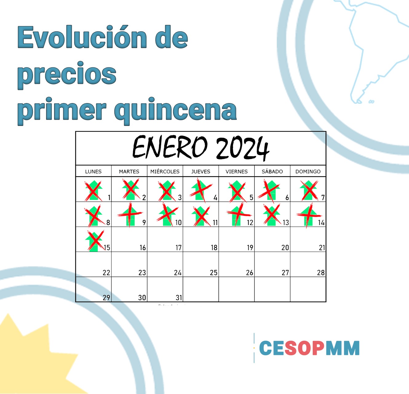Variación de precios de productos de la canasta básica en comercios de cercanía en la primera quincena de enero 2024