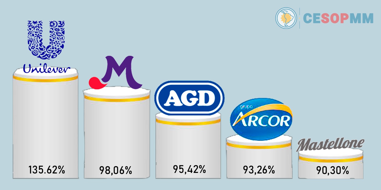 Variación de precio de los productos grandes empresas productoras de alimentos en comercios de cercanía en el AMBA acumulado abril 2024